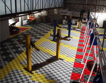 大型汽車修理廠維修車間地面裝修材料,灰紅黃三色搭配風格