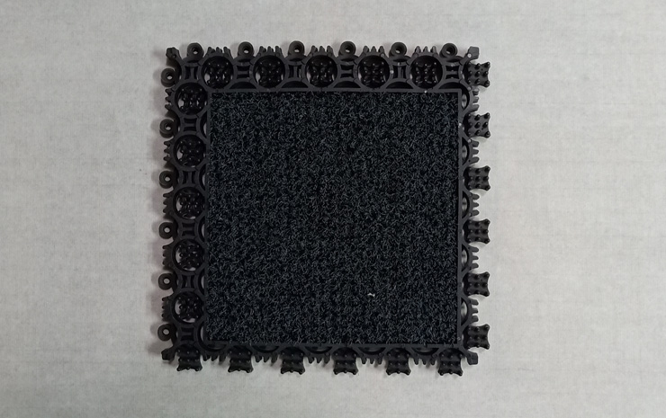 大毯面設(shè)計(jì),除塵和裝飾效果更卓越,四周可帶斜坡圍邊,富有彈性,抗老化,抗紫外線,滿足高流量踩踏。